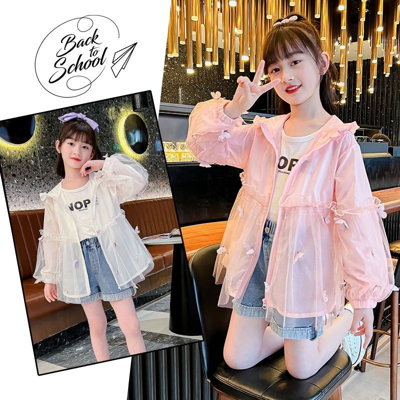 Girl’s Sun protection clothing,summer thin breathable jacket ice silk clothing